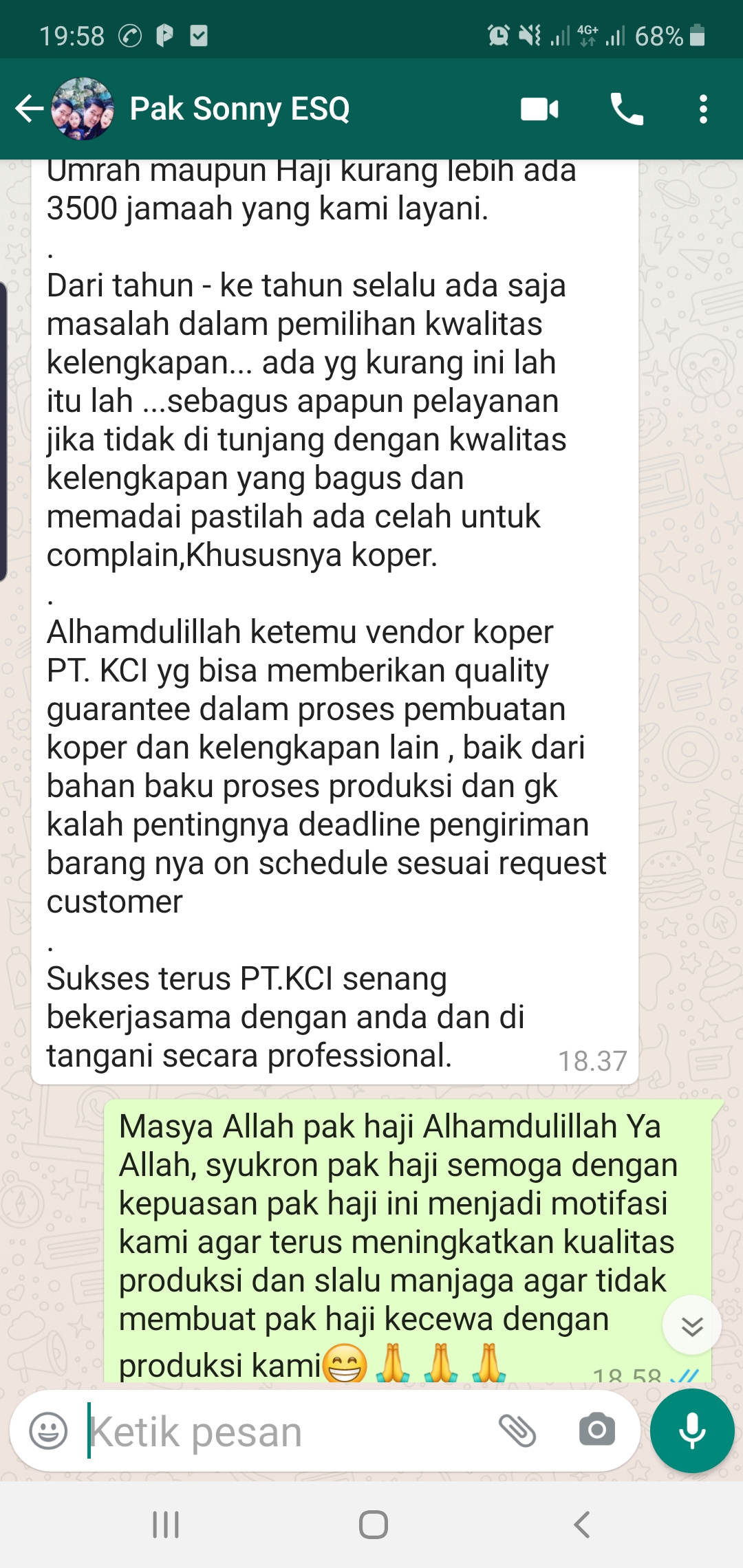 Kami mampu membuat semua jenis tas untuk berbagai keperluan dengan harga terjangkau dan kualitas terbaik. Tenaga kerja kami memiliki pengalaman belasan tahun bergerak didunia tas & koper sehingga memastikan kualitas tas / koper yang kami hasilkan memiliki standar terbaik. Kami juga memiliki sistem Quality Control yang ketat untuk memastikan produk yang kami produksi memiliki standar kualitas terbaik. Minimum Pemesanan 50 pcs saja.